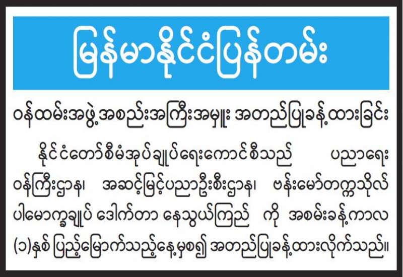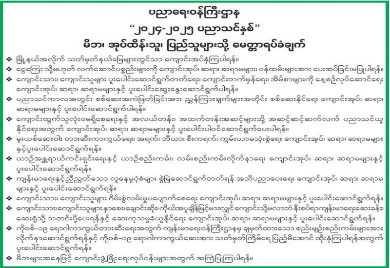 မြို့နယ်အလိုက် သတ်မှတ်နယ်မြေများတွင်သာ ကျောင်းအပ်နှံကြပါရန်။