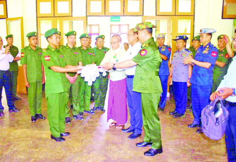 ရှမ်းပြည်နယ်(တောင်ပိုင်း) နမ့်စန်မြို့ရှိ တပ်မတော်ဆေးရုံ၌ တက်ရောက်ဆေးကုသမှုခံယူနေသော အရာရှိ၊ စစ်သည်၊ မိသားစုဝင်များ၊ စစ်မှုထမ်းဟောင်းအဖွဲ့ဝင်များနှင့် မိသားစုဝင်များ၊ ဒေသခံတိုင်းရင်းသားများအား ယနေ့မွန်းလွဲပိုင်းတွင် ပြည်နယ်ဝန်ကြီးချုပ် ဦးအောင်အောင်၊ အရှေ့အလယ်ပိုင်းတိုင်းစစ်ဌာနချုပ် တိုင်းမှူး ဗိုလ်ချုပ်မျိုးမင်းထွန်းနှင့် တာဝန်ရှိသူများက သွားရောက်ကြည့်ရှု၍ တစ်ဦးချင်း၏ ရောဂါဖြစ်ပွားမှု၊ ဆေးဝါးကုသပေးထားမှုနှင့် ကျန်းမာရေးတိုးတက်ကောင်းမွန်မှု အခြေအနေများကို ရင်းရင်းနှီးနှီး မေးမြန်းအားပေးစကားပြောကြားပြီး အာဟာရဖြည့်စားသောက်ဖွယ်ရာများ ပေးအပ်သည်။