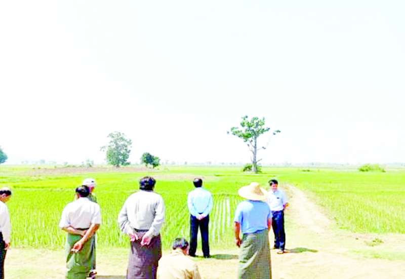 ရှမ်းပြည်နယ်(တောင်ပိုင်း) တောင်ကြီးမြို့နယ် မိုင်းသော်အရှေ့ကျေးရွာအုပ်စု ဘုရားငါးဆူကျေးရွာရှိ ချယ်ရီမြေစိုက်ပျိုးရေးနှင့် အထွေထွေစီးပွားရေးလုပ်ငန်း သမဝါယမအသင်းသားပိုင် လယ်မြေများတွင် နွေစပါးစိုက်ပျိုးထားရှိမှုအခြေအနေအား ပြည်နယ်သမဝါယမဦးစီးဌာန ညွှန်ကြားရေးမှူး ဦးကျော်မိုးတင့်နှင့်တာဝန်ရှိသူများက ကွင်းဆင်းကြည့်ရှုသည်။