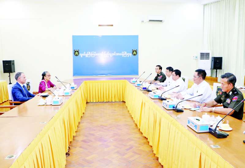လူဝင်မှုကြီးကြပ်ရေးနှင့် ပြည်သူ့အင်အားဝန်ကြီးဌာန ပြည်ထောင်စုဝန်ကြီး ဦးမြင့်ကြိုင်သည် မြန်မာနိုင်ငံဆိုင်ရာ ကုလသမဂ္ဂယာယီဌာနေ ညှိနှိုင်းရေးမှူးနှင့် လူသားချင်းစာနာထောက်ထားမှုဆိုင်ရာ ယာယီညှိနှိုင်းရေးမှူး Mr. Marcoluigi Corsi နှင့် အဖွဲ့အား ယနေ့မွန်းလွဲ ၂ နာရီတွင် နေပြည်တော်ရှိ အဆိုပါဝန်ကြီးဌာန အစည်းအဝေးခန်းမ၌ လက်ခံတွေ့ဆုံသည်။