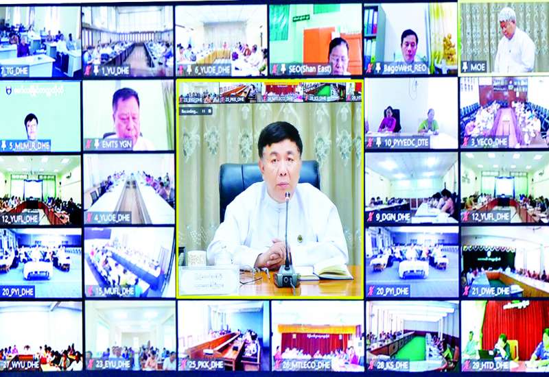 ပညာရေးဝန်ကြီးဌာန ပြည်ထောင်စုဝန်ကြီး ဒေါက်တာညွန့်ဖေသည် ယနေ့နံနက်ပိုင်းက နေပြည်တော်ရှိ ပညာရေးဝန်ကြီးဌာန ရုံးအမှတ် (၁၃) ရှိ အစည်းအဝေးခန်းမ၌ တက္ကသိုလ်ပါမောက္ခချုပ်များ၊ ပညာရေးဒီဂရီကောလိပ် ကျောင်းအုပ်ကြီးများ၊ တိုင်းဒေသကြီး/ ပြည်နယ် ပညာရေးမှူးများနှင့် အွန်လိုင်းဖြင့် တွေ့ဆုံသည်။