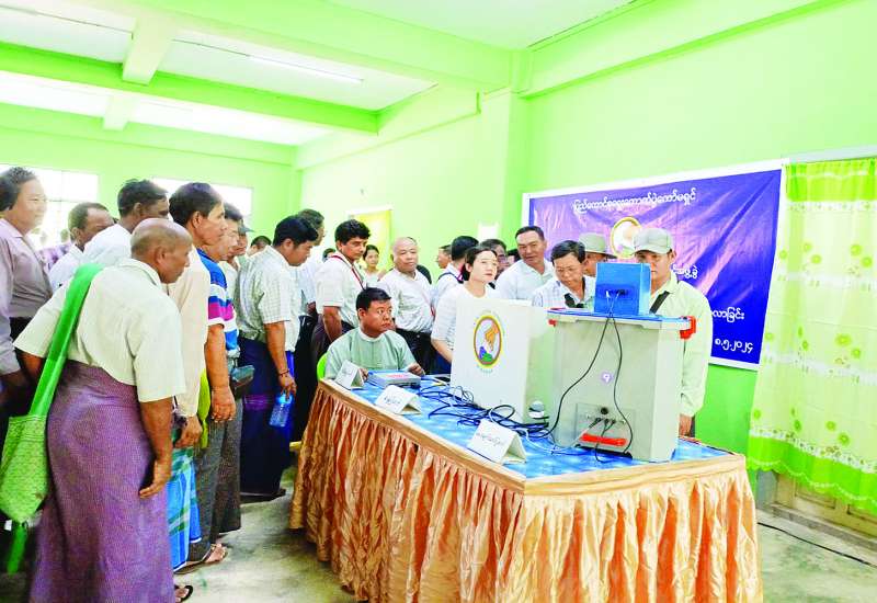 ပဲခူးတိုင်းဒေသကြီး နယ်မြေရှိ မဲဆန္ဒရှင်ပြည်သူများအား မြန်မာအီလက်ထရောနစ်မဲပေးစက်ဖြင့် လက်တွေ့စမ်းသပ်မဲပေးလေ့လာခြင်းကို ဧပြီ ၂၅ ရက်မှစ၍ ဆောင်ရွက်လျက်ရှိရာ ယနေ့တွင် ညောင်လေးပင်မြို့နယ် ရပ်ကွက်နှင့် ကျေးရွာအုပ်စု ၆၁ ခုမှ ပြည်သူ ၃၆၉ ဦး၊ ကျောက်တံခါးမြို့နယ် ရပ်ကွက်နှင့်ကျေးရွာအုပ်စု ၆၄ ခုမှ ပြည်သူ ၃၆၂ ဦး စုစုပေါင်း ၇၃၁ ဦး တက်ရောက်ပြီး လက်တွေ့စမ်းသပ်မဲပေးလေ့လာကြသည်။