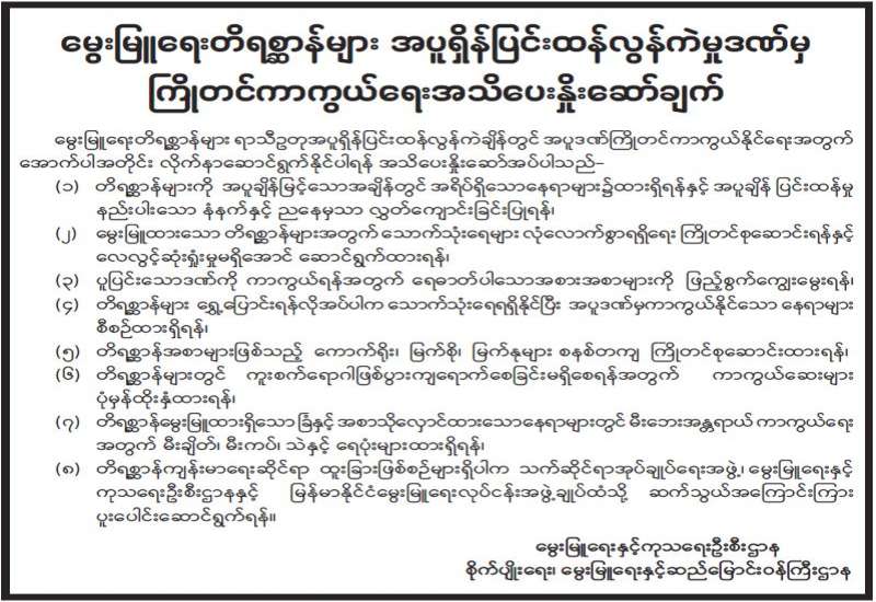 ရန်ကုန်မြို့နှင့် မန္တလေးမြို့အတွက် ရည်ညွှန်းလက်ကားဈေးနှုန်းများနှင့် ပြည်ထောင်စုနယ်မြေ နေပြည်တော်၊ တိုင်းဒေသကြီး/ပြည်နယ် မြို့တော်များအတွက် ရည်ညွှန်းလက်လီဈေးနှုန်းများ