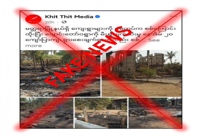 မန္တလေးတိုင်းဒေသကြီး၊ မတ္တရာမြို့နယ်၊ ချောင်းတော်ဝကျေးရွာကို လုံခြုံရေးတပ်ဖွဲ့ဝင်များက မေလ ၄ ရက်နေ့တွင် မီးရှို့ဖျက်ဆီးခဲ့ကြောင်း၊ အဆိုပါမီးရှို့မှုကြောင့် နေအိမ် ၂၀ ကျော် မီးလောင်ပြာကျခဲ့သည်ဟု တစ်ဖက်သတ်စွပ်စွဲရေးသားထားသည့် သတင်းတု၊ သတင်းအမှားများကို တရားမဝင်ပြည်ဖျက်မီဒီယာ Khit Thit က လုံခြုံရေးတပ်ဖွဲ့ဝင်များအပေါ် ပြည်သူများ အထင်အမြင်လွဲမှားစေရန်အတွက် လှုံ့ဆော်ရေးသားဝါဒဖြန့်ဝေလျက်ရှိသည်ကို တွေ့ရှိရသည်။