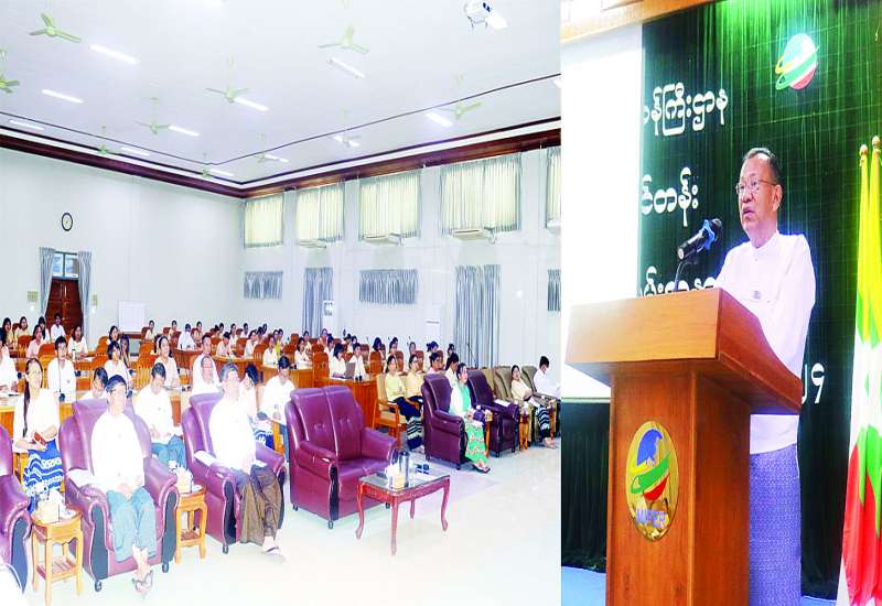 ရင်းနှီးမြှုပ်နှံမှုနှင့် နိုင်ငံခြားစီးပွားဆက်သွယ်ရေးဝန်ကြီးဌာန ဝန်ထမ်းများ၏ လူ့စွမ်းအားအရင်းအမြစ်ဖွံ့ဖြိုးတိုးတက်စေရန်နှင့် ဝန်ထမ်းစွမ်းဆောင်ရည်မြှင့်တင်ရန် ရည်ရွယ်သည့် Knowledge Sharing Programme (KSP) သောကြာနေ့စကားဝိုင်း (Friday Talk) အမှတ်စဉ် (၅၄) အဖြစ် တရုတ်နိုင်ငံ ပေကျင်းမြို့ Academy for International Business Officials (AIBO) တွင် ကျင်းပပြုလုပ်ခဲ့သည့် “မြန်မာနိုင်ငံ၏ ရင်းနှီးမြှုပ်နှံမှုတိုးမြှင့်စေရေးအတွက် တရုတ်ပြည်သူ့သမ္မတနိုင်ငံ၏ အတွေ့အကြုံမျှဝေခြင်းဆိုင်ရာ ဆွေးနွေးပွဲ” ကို ယနေ့မွန်းလွဲပိုင်းက ရင်းနှီးမြှုပ်နှံမှုနှင့် နိုင်ငံခြားစီးပွားဆက်သွယ်ရေးဝန်ကြီးဌာန ရုံးအမှတ် (၁) ၌ကျင်းပရာ ပြည်ထောင်စုဝန်ကြီး ဒေါက်တာကံဇော် တက်ရောက်အမှာစကားပြောကြားသည်။