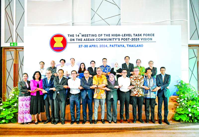 အာဆီယံအသိုက်အဝန်း ၂၀၂၅ ခုနှစ်အလွန် မျှော်မှန်းချက်ရေးဆွဲရေးဆိုင်ရာ အဆင့်မြင့်လုပ်ငန်း အဖွဲ့၏ (၁၄) ကြိမ်မြောက်အစည်းအဝေးကို ထိုင်းနိုင်ငံ ပတ္တရားမြို့တွင် ဧပြီ ၂၇ ရက်မှ ၃၀ ရက်အထိ ကျင်းပခဲ့ပြီး အာဆီယံအသိုက်အဝန်း ၂၀၂၅ ခုနှစ် အလွန် မျှော်မှန်းချက်ရေးဆွဲရေးဆိုင်ရာ မြန်မာအဆင့်မြင့်ကိုယ်စားလှယ်၊ ရင်းနှီးမြှုပ်နှံမှုနှင့် နိုင်ငံခြားစီးပွားဆက်သွယ်ရေးဝန်ကြီးဌာန ဒုတိယဝန်ကြီး ဒေါက်တာဝါဝါမောင် ဦးဆောင်သည့် ကိုယ်စားလှယ်အဖွဲ့ တက်ရောက်ကြသည်။