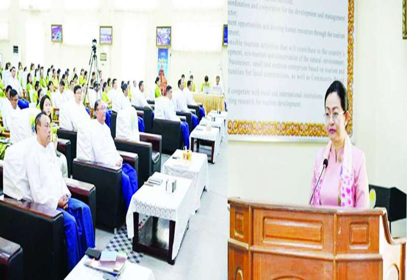 တရုတ်ဘာသာစကားပြော HSK-1 နှင့် HSK-2 သင်တန်းများ ဖွင့်ပွဲ အခမ်းနားကို ယနေ့နံနက်ပိုင်းတွင် နေပြည်တော်ရှိ ဟိုတယ်နှင့်ခရီးသွားလာရေးဝန်ကြီးဌာန ကျောက်စိမ်းခန်းမ၌ ကျင်းပသည်။