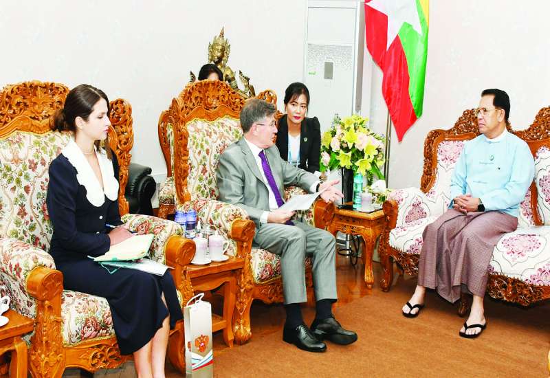 ပြန်ကြားရေးဝန်ကြီးဌာန ပြည်ထောင်စုဝန်ကြီး ဦးမောင်မောင်အုန်းအား မြန်မာနိုင်ငံဆိုင်ရာ ရုရှားနိုင်ငံသံအမတ်ကြီး H.E. Mr. Iskander Azizov က ယနေ့နံနက်ပိုင်းတွင် နေပြည်တော်ရှိ ပြန်ကြားရေးဝန်ကြီးဌာန ဧည့်ခန်းမ၌ လာရောက်တွေ့ဆုံသည်။