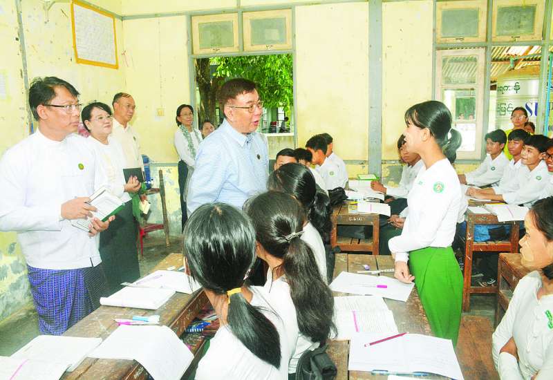 ပညာရေးဝန်ကြီးဌာန ဒုတိယဝန်ကြီး ဒေါက်တာဇော်မြင့်သည် တာဝန်ရှိသူများနှင့်အတူ ယနေ့နံနက်ပိုင်းတွင် အောင်ပန်းမြို့ အမှတ် (၁၀) အခြေခံပညာအထက်တန်းကျောင်းသို့ ရောက်ရှိပြီး နှစ်ထပ်ကျောင်းဆောင်သစ် တည်ဆောက်ပြီးစီးမှုနှင့် ကျောင်းနှင့် ကျောင်းဝန်းကျင် သန့်ရှင်းသာယာလှပရေး ဆောင်ရွက်ထားရှိမှုတို့ကို ကြည့်ရှုစစ်ဆေးသည်။