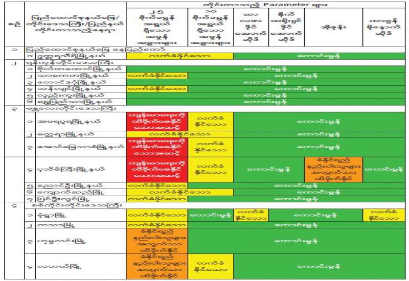 မြန်မာနိုင်ငံတစ်ဝန်းရှိ ဝန်းကျင်လေထုအရည်အသွေးအခြေအနေအား လေ့လာဆန်းစစ်နိုင်ရန်အတွက် ပတ်ဝန်းကျင်ထိန်းသိမ်းရေးဦးစီးဌာနအနေဖြင့် ပြည်ထောင်စုနယ်မြေ/ တိုင်းဒေသကြီး/ ပြည်နယ်များရှိ သတ်မှတ် Sampling Point နေရာများတွင် ဝန်းကျင်လေထုအရည်အသွေးကို Environmental Perimeter Air Station (EPAS) - Haz-Scanner ၊ Air Quality Monitoring Station (AQM-65)၊ Scentroid (SL – 50 Scential)၊ Aeroqual (Series – 500 Portable Air Quality Monitor)၊ AQMesh (Dust Analyzer- 1941150)၊ (Gas Analyzer- 1940150)၊ Portable Beta Attenuation Mass Monitor (BAM 1022)၊ Air Quality Monitoring Station (AQMS) နှင့် Continuous Particulate Monitor များအသုံးပြု၍ Particulate Matter 2.5 (PM2.5)၊ Particulate Matter 10 (PM10)၊ Sulphur Dioxide(SO2)၊ Nitrogen Dioxide(NO2)၊ Ozone (O3) နှင့် Carbon Monoxide(CO) စသည့် အဓိက Parameter များကို ပုံမှန်တိုင်းတာပြီး လေ့လာဆန်းစစ်လျက်ရှိပါသည်။