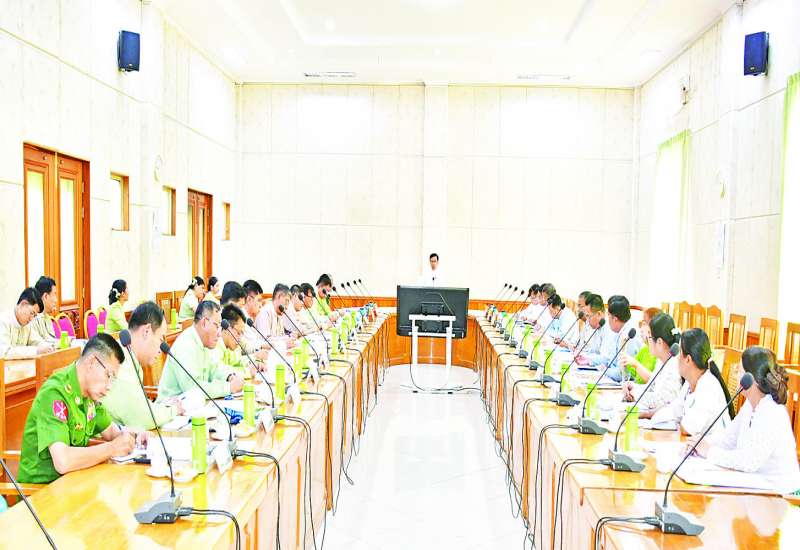 ပြည်ထောင်စုနယ်မြေ နေပြည်တော်အတွင်း နိုင်ငံ့စီးပွားမြှင့်တင်ရေးရန်ပုံငွေဖြင့် ဆောင်ရွက်သည့်လုပ်ငန်းများ၊ စိုက်ပျိုးသီးနှံအလိုက် ပန်းတိုင်အထွက်နှုန်းရရှိရေးနှင့် စက်မှုလယ်ယာကူးပြောင်းရေး လုပ်ငန်းညှိနှိုင်းအစည်းအဝေးကို ယနေ့နံနက်ပိုင်းက နေပြည်တော်ကောင်စီရုံး အစည်းအဝေးခန်းမ (၁) ၌ ကျင်းပရာ နေပြည်တော်ကောင်စီဥက္ကဋ္ဌ ဦးသန်းထွန်းဦး၊ နေပြည်တော်ကောင်စီဝင်များ၊ နေပြည်တော်အဆင့် ဌာနဆိုင်ရာများနှင့် ခရိုင်စီမံအုပ်ချုပ်ရေးအဖွဲ့ဥက္ကဋ္ဌများ တက်ရောက်ကြသည်။