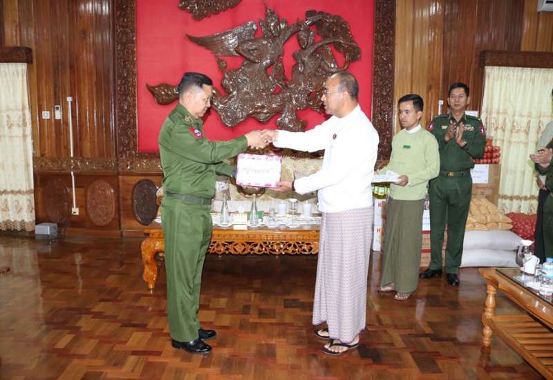 အရှေ့မြောက်တိုင်းစစ်ဌာနချုပ်နယ်မြေအတွင်း လုံခြုံရေးတာဝန်များကို စွမ်းစွမ်းတမံထမ်းဆောင်ခဲ့သည့် လုံခြုံရေးတပ်ဖွဲ့ဝင်များအတွက် ဂုဏ်ပြုချီးမြှင့်ငွေ နှင့်စားသောက်ဖွယ်ရာများဂုဏ်ပြုပေးအပ်ပွဲကို ယနေ့နံနက်ပိုင်းတွင် တိုင်းစစ်ဌာနချုပ်၊ ပင်လုံရိပ်သာ၌ ပြုလုပ်ရာ ရှမ်းပြည်နယ် ဝန်ကြီးချုပ် ဦးအောင်အောင်၊ ကာကွယ်ရေးဦးစီးချုပ်ရုံး(ကြည်း)မှ ဗိုလ်ချုပ် နိုင်နိုင်ဦး၊ အရှေ့ပိုင်းတိုင်းစစ်ဌာနချုပ် တိုင်းမှူး ဗိုလ်ချုပ် ဇော်မင်းလတ်နှင့် အဖွဲ့ဝင်များ တက်ရောက်ကြသည်။