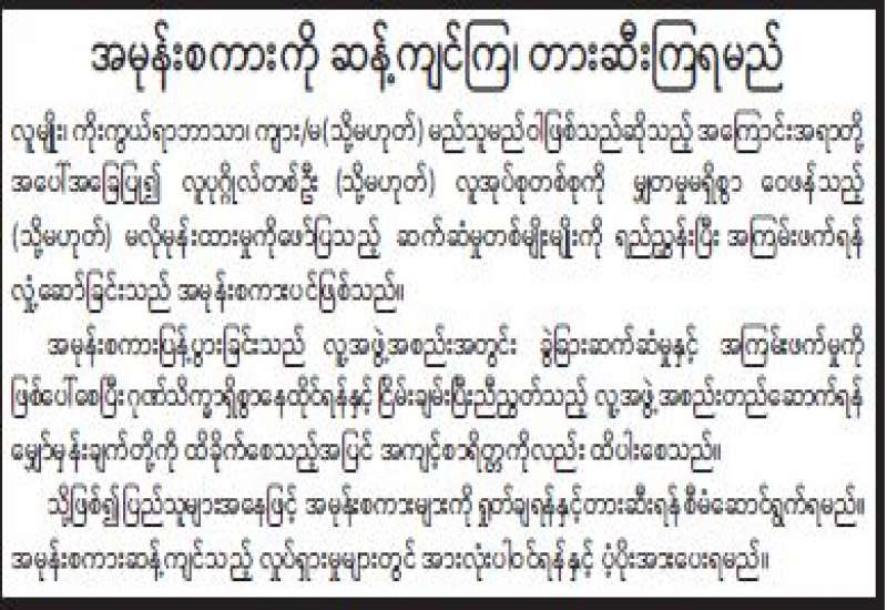 အကြမ်းဖက်မှုပပျောက်ရေးအတွက် ပြည်သူသို့ အသိပေးနှိုးဆော်ချက်