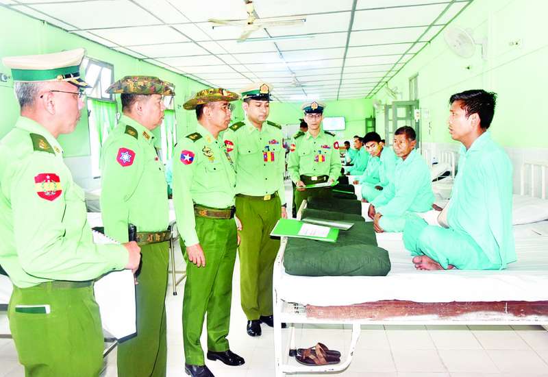 ပဲခူးတိုင်းဒေသကြီး တောင်ငူမြို့ရှိ တပ်မတော်ဆေးရုံ၌ တက်ရောက်ဆေးကုသမှုခံယူနေသော အရာရှိ၊ စစ်သည်၊ မိသားစုဝင်များနှင့် ဒေသခံပြည်သူများအား ယနေ့နံနက်ပိုင်းတွင် ကာကွယ်ရေးဦးစီးချုပ်ရုံး (ကြည်း) မှ ဒုတိယဗိုလ်ချုပ်ကြီး ဖုန်းမြတ်၊ တောင်ပိုင်းတိုင်းစစ်ဌာနချုပ် တိုင်းမှူး ဗိုလ်မှူးချုပ် ကြည်သိုက်နှင့် တာဝန်ရှိသူများက သွားရောက်ကြည့်ရှု၍ တစ်ဦးချင်း၏ ရောဂါဖြစ်ပွားမှု၊ ဆေးဝါးကုသပေးထားမှုနှင့် ကျန်းမာရေးတိုးတက်ကောင်းမွန်မှုအခြေအနေများကို ရင်းရင်းနှီးနှီးမေးမြန်း အားပေးစကားပြောကြားပြီး အာဟာရဖြည့်စားသောက်ဖွယ်ရာများ ပေးအပ်ကြသည်။