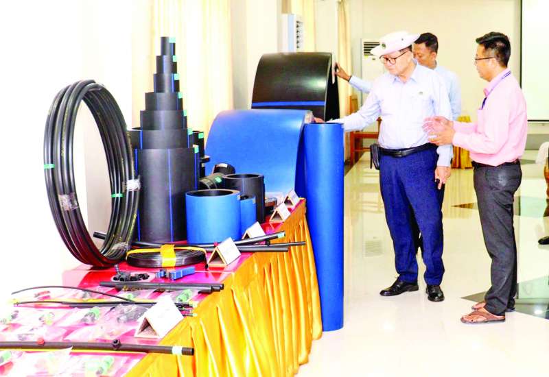 အရည်အသွေးကောင်းမွန်ပြီး ဈေးနှုန်းသင့်တင့်သော ပြည်တွင်းထုတ် လယ်ယာလုပ်ငန်းသုံး ပစ္စည်း ထုတ်လုပ်သည့်လုပ်ငန်းများ ဖွံ့ဖြိုးလာစေရေးအတွက် စိုက်ပျိုးရေး၊ မွေးမြူရေးနှင့် ဆည်မြောင်းဝန်ကြီးဌာနက ကူညီအားပေးလျက်ရှိရာ စိုက်ပျိုးရေး၊ မွေးမြူရေးနှင့်ဆည်မြောင်းဝန်ကြီးဌာန ဒုတိယဝန်ကြီး ဒေါက်တာအောင်ကြီးသည် ယမန်နေ့နံနက်ပိုင်းက ရန်ကုန်တိုင်းဒေသကြီး မင်္ဂလာဒုံမြို့နယ်ရှိ စိုက်ပျိုးရေးနှင့် အခြားဘက်စုံသုံး PVC ပိုက်နှင့်ရေတိုင်ကီထုတ်လုပ်သည့် ပုဂ္ဂလိကစက်ရုံသို့ ရောက်ရှိပြီး ရေပိုက်၊ ရေတိုင်ကီများ၊ စိုက်ပျိုးရေးသုံး PE အစက်ချ ပိုက်များ၊ စိုက်ပျိုးရေးသုံး ရေမှုန်ဖျန်းပိုက်များ ထုတ်လုပ်နေမှုကို ကြည့်ရှုအားပေးကာ လိုအပ်ချက်များ ဆွေးနွေးမှာကြားသည်။