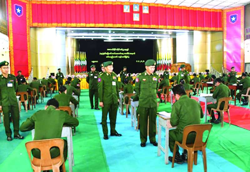 (၇၉)နှစ်မြောက်တပ်မတော်နေ့အထိမ်းအမှတ် စစ်သည်တော်ကျင့်ဝတ်ပြိုင်ပွဲကို ယနေ့နံနက်ပိုင်းတွင် အလယ်ပိုင်းတိုင်းစစ်ဌာနချုပ် ရန်အောင်မြင်ခန်းမနှင့် နယ်မြေခံသင်တန်းကျောင်းခန်းမတို့၌ ကျင်းပသည်။