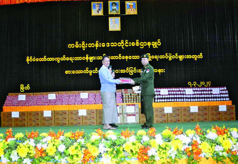 နိုင်ငံတော်ကာကွယ်ရေးနှင့် လုံခြုံရေးတာဝန်များကို စွမ်းစွမ်းတမံထမ်းဆောင်လျက်ရှိသော လုံခြုံရေးတပ်ဖွဲ့ဝင်များအတွက် စေတနာရှင်အလှူရှင်များက စားသောက်ဖွယ်ရာများ လာရောက်ဂုဏ်ပြုပေးအပ်လျက်ရှိသည်။