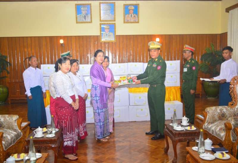 နိုင်ငံတော်ကာကွယ်ရေးနှင့် လုံခြုံရေးတာဝန်များကို စွမ်းစွမ်းတမံ ထမ်းဆောင်လျက် ရှိသော လုံခြုံရေးတပ်ဖွဲ့ဝင်များအတွက် စေတနာရှင် အလှူရှင်များက စားသောက်ဖွယ်ရာများ လာရောက်ဂုဏ်ပြုပေးအပ်လျက်ရှိသည်။