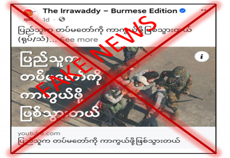 ရွှေဘို-မြစ်ကြီးနားကားလမ်းတွင် လုံခြုံရေးတပ်ဖွဲ့ဝင်များမှ စစ်မှုထမ်းဆောင်ရန်အတွက် လူငယ်များကို စစ်ဆေးမှုများပြုလုပ်ဖမ်းဆီးနေကြောင်း မဟုတ်မမှန် သတင်းများကို တရားမဝင်ပြည်ဖျက်မီဒီယာ Khit Thit က လုပ်ကြံဝါဒဖြန့်ရေးသားလျက်ရှိကြောင်း တွေ့ရှိရသည်။