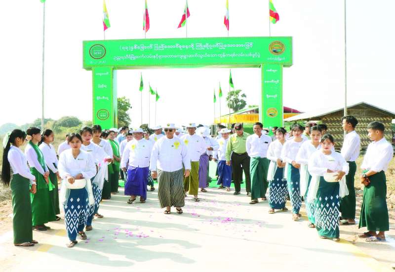 (၇၇) နှစ်မြောက် ပြည်ထောင်စုနေ့ကို ကြိုဆိုဂုဏ်ပြုသောအားဖြင့် နေပြည်တော်ကောင်စီနယ်မြေ ဒက္ခိဏသီရိမြို့နယ် ကျေးလက်ဒေသဖွံ့ဖြိုးတိုးတက်ရေးဦးစီးဌာန၏ ရွှေပြည်ကျေးရွာ ကုန်ထုတ်လမ်းဖွင့်ပွဲအခမ်းအနားနှင့် တပ်ကုန်းမြို့နယ် ကျေးလက်လမ်းဖွံ့ဖြိုးရေးဦးစီးဌာန၏ ဥတ္တရသီရိမြို့ဆက်လမ်းနှင့် ရှားတောကျေးရွာ ဆက်သွယ်သော ကွန်ကရစ်လမ်းဖွင့်ပွဲအခမ်းအနား၊ တပ်ကုန်းမြို့နယ် ဂွေးပင်စံပြကျေးရွာမှ သမဝါယမအသင်းသားတောင်သူများထံ မျိုး၊ သွင်းအားစုမြေဩဇာများ ထောက်ပံ့ပေးအပ်ပွဲအခမ်းအနားများကို ယနေ့နံနက်ပိုင်းက သက်ဆိုင်ရာနေရာများ၌ကျင်းပပြုလုပ်ရာ သမဝါယမနှင့် ကျေးလက်ဖွံ့ဖြိုးရေးဝန်ကြီးဌာန ပြည်ထောင်စုဝန်ကြီး ဦးလှမိုး၊ နေပြည်တော်ကောင်စီဥက္ကဋ္ဌ ဦးသန်းထွန်းဦး၊ ဒုတိယဝန်ကြီး ဦးမြင့်စိုး၊ နေပြည်တော်ကောင်စီဝင်များ၊ အမြဲတမ်းအတွင်းဝန်၊ ညွှန်ကြားရေးမှူးချုပ်များ၊ ကျေးရွာသူ ကျေးရွာသားများနှင့် တာဝန်ရှိသူများ တက်ရောက်ကြသည်။