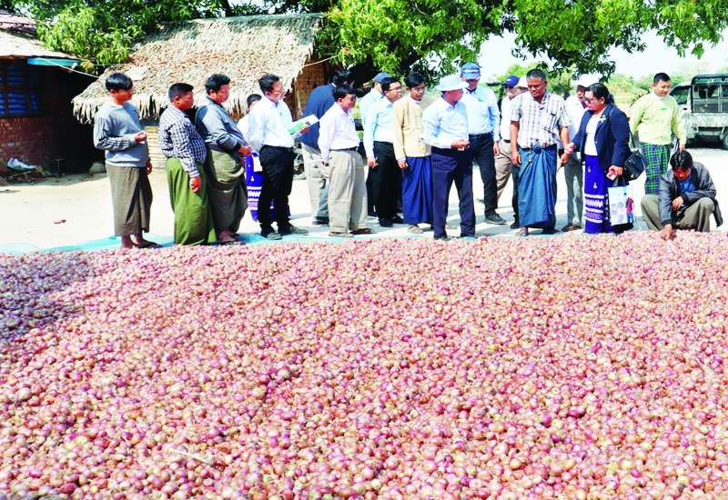 စိုက်ပျိုးရေး၊ မွေးမြူရေးနှင့်ဆည် မြောင်းဝန်ကြီးဌာန ဒုတိယဝန်ကြီး ဒေါက်တာတင်ထွဋ်သည် ယမန်နေ့နံနက်ပိုင်းတွင် မန္တလေးတိုင်းဒေသကြီး ရမည်းသင်းမြို့နယ်ရှိ စိုက်ပျိုးရေးသုတေသနဦးစီးဌာန စီပင်စိုက်ပျိုးရေးသုတေသနခြံ၏ သုတေသနနှင့် မျိုးစေ့ထုတ်လုပ်မှု ဖွံ့ဖြိုးရေးလုပ်ငန်း အကောင်အထည်ဖော် ဆောင်ရွက်နေမှုများ၊ ဆင်းရွှေကြာ-၂ နေကြာ မျိုးသန့် ရွေးချယ်ရေး လုပ်ငန်းများနှင့် ဂျုံသီးနှံ သုတေသနလုပ်ငန်း ဆောင်ရွက်နေမှုများကို ကွင်းဆင်း ကြည့်ရှုစစ်ဆေးပြီး နည်းပညာနှင့် သုတေသန လိုအပ်ချက်များကို မှာကြားသည်။