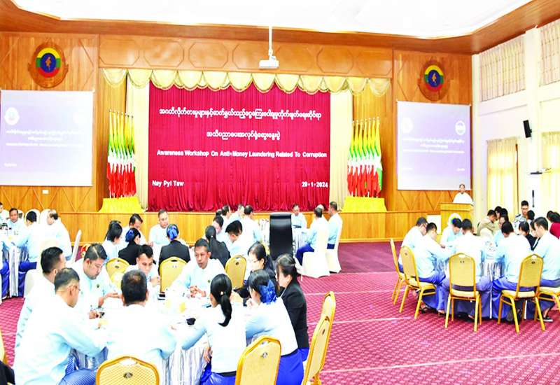 အဂတိလိုက်စားမှုနှင့်ဆက်နွှယ်သည့် ငွေကြေးခဝါချမှုတိုက်ဖျက်ရေးဆိုင်ရာ အသိပညာပေး အလုပ်ရုံဆွေးနွေးပွဲ အခမ်းအနားကို ယနေ့နံနက် ၉ နာရီခွဲတွင် အဂတိလိုက်စားမှု တိုက်ဖျက်ရေးကော်မရှင်ရုံး စုပေါင်းခန်းမ၌ကျင်းပရာ ကော်မရှင်ဥက္ကဋ္ဌ၊ အတွင်းရေးမှူးနှင့် အဖွဲ့ဝင်များ၊ ဥပဒေရေးရာဝန်ကြီးဌာန ညွှန်ကြားရေးမှူးချုပ်၊ ငွေကြေးဆိုင်ရာ စုံစမ်းထောက်လှမ်းရေးအဖွဲ့ အဖွဲ့ခေါင်းဆောင် ရဲမှူးချုပ်၊ ကော်မရှင်ရုံး ညွှန်ကြားရေးမှူးချုပ်များ၊ ဒုတိယရဲမှူးကြီးများ၊ ကော်မရှင်ရုံး ဒုတိယညွှန်ကြားရေးမှူးချုပ်များ၊ ပြည်ထောင်စုစာရင်းစစ်ချုပ်ရုံး ညွှန်ကြားရေးမှူး၊ ကော်မရှင်ရုံးနှင့် ကော်မရှင်ရုံးခွဲများမှ အရာထမ်းများ တက်ရောက်ကြသည်။