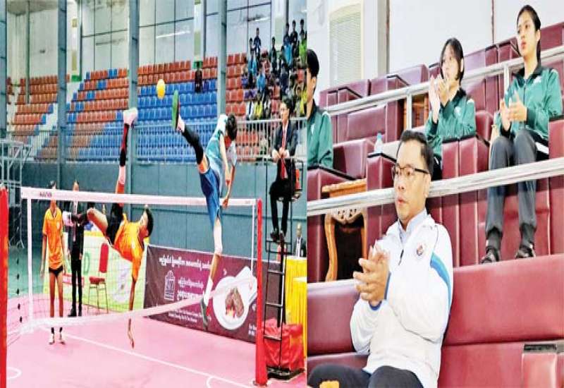 အဆင့်မြင့်သိပ္ပံနှင့်နည်းပညာဦးစီးဌာန နည်းပညာနှင့် ကွန်ပျူတာတက္ကသိုလ်များ၏ ၂၀၂၃-၂၀၂၄ ပညာသင်နှစ် တက္ကသိုလ်ပေါင်းစုံ အားကစားပြိုင်ပွဲများကို နေပြည်တော် ဝဏ္ဏသိဒ္ဓိအားကစားကွင်း၌ အားကစားနည်းအလိုက် သက်ဆိုင်ရာကွင်း/ရုံများတွင် ယနေ့ဆက်လက်ကျင်းပပြီး နံနက် ၉ နာရီတွင် Boxing Indoor Stadium ၌ တက္ကသိုလ်ပေါင်းစုံပိုက်ကျော်ခြင်း အမျိုးသား ၃ ယောက်တွဲ ကွာတားဖိုင်နယ်နှင့် ဆီမီးဖိုင်နယ်ပွဲစဉ်များ ယှဉ်ပြိုင်ကစားကြရာ ဒုတိယဝန်ကြီး ဒေါက်တာအောင်ဇေယျ၊ တာဝန်ရှိသူများ တက်ရောက်ကြည့်ရှုအားပေးသည်။