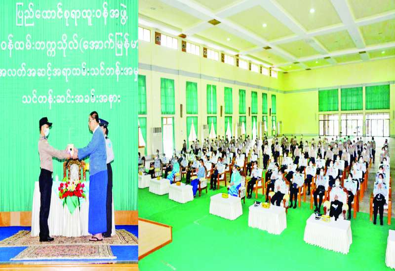 နိုင်ငံ့ဝန်ထမ်းတက္ကသိုလ် (အောက်မြန်မာပြည်) အလယ်အလတ်အဆင့် အရာထမ်းသင်တန်း အမှတ်စဉ် (၁၀) သင်တန်းဆင်းပွဲအခမ်းအနားကို ယနေ့နံနက် ၈ နာရီတွင် ရတနာသိင်္ဃခန်းမ၌ ကျင်းပရာ ပြည်ထောင်စုရာထူးဝန်အဖွဲ့ အဖွဲ့ဝင် ဦးစိုးတင့်၊ တာဝန်ရှိပုဂ္ဂိုလ်များ၊ နိုင်ငံ့ဝန်ထမ်းတက္ကသိုလ် (အောက်မြန်မာပြည်) မှ ပါမောက္ခချုပ်နှင့် တာဝန်ရှိသူများ၊ သင်တန်းသား သင်တန်းသူများ တက်ရောက်ကြသည်။