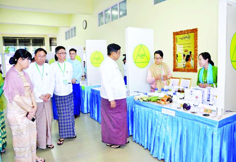 အသေးစား၊ အငယ်စားနှင့်အလတ်စားစီးပွားရေးလုပ်ငန်းများ ဖွံ့ဖြိုးတိုးတက်ရေးလုပ်ငန်းကော်မတီ ဒုတိယဥက္ကဋ္ဌ စက်မှုဝန်ကြီးဌာန ပြည်ထောင်စုဝန်ကြီး ဒေါက်တာချာလီသန်းသည် ယနေ့ညနေပိုင်းတွင် နေပြည်တော် State Academy သို့ သွားရောက်၍ (၂၃) ကြိမ်မြောက် ဝိဇ္ဇာနှင့် သိပ္ပံသုတေသနညီလာခံတွင် ခင်းကျင်းပြသထားသည့် သုတေသနစာတမ်းများကို ကြည့်ရှုအားပေးရာ တက္ကသိုလ်အသီးသီးမှ ပါမောက္ခချုပ်များ၊ ဌာနမှူးများက သက်ဆိုင်ရာ သုတေသနစာတမ်းများကို ရှင်းလင်းတင်ပြသည်။