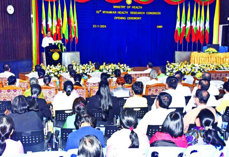 (၅၂) ကြိမ်မြောက် မြန်မာနိုင်ငံကျန်းမာရေးဆိုင်ရာသုတေသနညီလာခံ ဖွင့်ပွဲအခမ်းအနားကို ဆေးသုတေသနဦးစီးဌာန အမှတ် (၅) ဇီဝကလမ်း ဒဂုံမြို့နယ် ရန်ကုန်မြို့တွင် ယနေ့နံနက်ပိုင်းကကျင်းပရာ ကျန်းမာရေးဝန်ကြီးဌာန ပြည်ထောင်စုဝန်ကြီး ပါမောက္ခဒေါက်တာသက်ခိုင်ဝင်း၊ ရန်ကုန်တိုင်းဒေသကြီးဝန်ကြီးချုပ် ဦးစိုးသိန်း ၊ ဒုတိယဝန်ကြီးပါမောက္ခ ဒေါက်တာအေးထွန်းနှင့် တာဝန်ရှိသူများ တက်ရောက်ကြသည်။