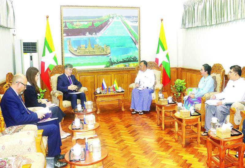 ရင်းနှီးမြှုပ်နှံမှုနှင့် နိုင်ငံခြားစီးပွားဆက်သွယ်ရေးဝန်ကြီးဌာန ပြည်ထောင်စုဝန်ကြီး ဒေါက်တာကံဇော်သည် မြန်မာနိုင်ငံဆိုင်ရာ ရုရှားဖက်ဒရေးရှင်းနိုင်ငံ သံအမတ်ကြီး Mr. Iskander Azizov ဦးဆောင်သောအဖွဲ့ကို ယနေ့နံနက် ၉ နာရီတွင် နေပြည်တော်ရှိ ရင်းနှီးမြှုပ်နှံမှုနှင့် နိုင်ငံခြားစီးပွားဆက်သွယ်ရေးဝန်ကြီးဌာန ရုံးအမှတ်(၁)၌ လက်ခံတွေ့ဆုံသည်။