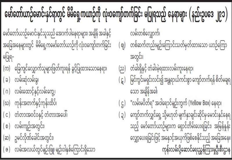 မော်တော်ယာဉ်မောင်းနှင်ရာတွင် မိမိရှေ့ကယာဉ်ကို လုံးဝကျော်တက်ခြင်း မပြုရသည့် နေရာများ (နည်းဥပဒေ ၂၉၁)