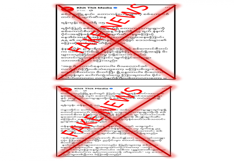 ပဲခူးတိုင်းဒေသကြီး၊ ပေါင်းတည်မြို့နယ်၊ သစ်ပုတ်ကျေးရွာအုပ်စုရှိ တောင်ခမောက်ကျေးရွာနှင့် မအူကွင်းကျေးရွာတို့ကို ပြည်သူ့စစ်ဖွဲ့ရန် ငြင်းပယ်မှု၊ တပ်သားသစ်စု ဆောင်းမပေးမှုတို့ကြောင့် ဇန်နဝါရီ ၁၄ ရက်နေ့တွင် လုံခြုံရေးတပ်ဖွဲ့ဝင်များက ကျေးရွာကို မီးရှို့ဖျက်ဆီးခဲ့ကြောင်း သတင်းတု၊ သတင်းအမှားများကို Khit Thit Media က မဟုတ်မမှန်ရေးသားဖြန့်ဝေနေသည်ကိုတွေ့ရှိရသည်။