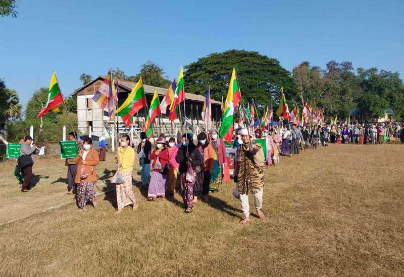 အကြမ်းဖက်သောင်းကြမ်းသူများက ဗုဒ္ဓဘာသာအပေါ် ဖျက်ဆီးရန်လုပ်ဆောင်နေမှုများ၊ ဘုရားစေတီ ပုထိုးများ၊ ဗုဒ္ဓဆင်းတုတော်များအား ဖျက်ဆီးစော်ကားနေသည့် အကြမ်းဖက်သောင်း ကျန်းသူများအား ကန့်ကွက်ရှုတ်ချပွဲကို ဇန်နဝါရီ ၁၃ ရက် နံနက် ၈ နာရီက ကျိုင်းတုံမြို့မအားကစားကွင်း၌ ပြုလုပ်သည်။
