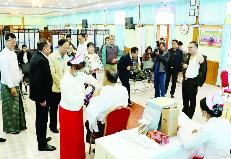 ကျန်းမာရေးဝန်ကြီးဌာန ပြည်သူ့ကျန်းမာရေးဦးစီးဌာန တိုးချဲ့ကာကွယ်ဆေးထိုးလုပ်ငန်းသည် ကိုဗစ်-၁၉ ရောဂါ ဗီဇပြောင်းမျိုးကွဲများကြောင့် ရောဂါကူးစက်မှုကာကွယ်နိုင်ရန် ရည်ရွယ်၍ ပြည်သူလူထုအား ကိုဗစ်-၁၉ ရောဂါ ထပ်ဆောင်းကာကွယ်ဆေးများကို ထပ်ဆောင်းထိုးနှံပေးလျက်ရှိရာ ယနေ့နံနက် ၈ နာရီတွင် ကျန်းမာရေးဝန်ကြီးဌာန ပြည်ထောင်စုဝန်ကြီး ဒေါက်တာသက်ခိုင်ဝင်းသည် ကုသရေးဦးစီးဌာန ညွှန်ကြားရေးမှူးချုပ်၊ ကချင်ပြည်နယ် ပြည်သူ့ကျန်းမာရေးနှင့် ကုသရေးဦးစီး ဌာနမှူးတို့ လိုက်ပါ၍ မြစ်ကြီးနားမြို့ ဆမားဒူဝါဆင်ဝါးနော်ခန်းမ၌ မြစ်ကြီးနားမြို့ရှိ နိုင်ငံ့ဝန်ထမ်းများနှင့် ပြည်သူလူထုကို ကိုဗစ်-၁၉ ရောဂါ ထပ်ဆောင်း ကာကွယ်ဆေးထိုးနှံပေးခြင်းအစီအစဉ်ကို သွားရောက်ကြည့်ရှုအားပေးသည်။