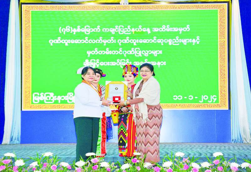 (၇၆)နှစ်မြောက် ကချင်ပြည်နယ်နေ့ အခမ်းအနားများ တက်ရောက်ရန် မြစ်ကြီးနားမြို့သို့ ရောက်ရှိနေသော နိုင်ငံတော်စီမံအုပ်ချုပ်ရေးကောင်စီအဖွဲ့ဝင် ဒေါ်ဒွဲဘူသည် ဇန်နဝါရီ ၁၁ ရက် မွန်းလွဲ ၂ နာရီတွင် မြစ်ကြီးနားမြို့ ပြည်သူ့အားကစားကွင်းအတွင်းရှိ မိုးလုံလေလုံအားကစားခန်းမ၌ ကျင်းပပြုလုပ်သည့် (၇၆)နှစ်မြောက် ကချင်ပြည်နယ်နေ့ အထိမ်းအမှတ်ဂုဏ်ထူးဆောင်လက်မှတ်၊ ဂုဏ်ထူးဆောင်ဆုပစ္စည်းများနှင့် မှတ်တမ်းတင်ဂုဏ်ပြုလွှာရရှိသူများအား ဆုများအပ်နှင်းချီးမြှင့်ပွဲအခမ်းအနား တတိယနေ့သို့ တက်ရောက်သည်။