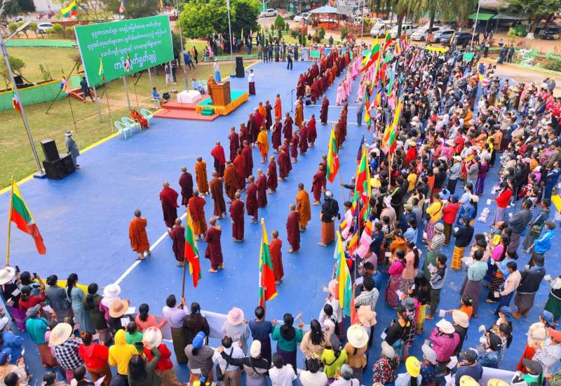 စစ်ရေးဖြင့်သက်ဆိုင်ခြင်းမရှိသည့် ဘုရားစေတီပုထိုးများ၊ ဗုဒ္ဓဆင်းတုတော်များအား ဖျက်ဆီးစော်ကားနေသည့် အကြမ်းဖက်သောင်းကျန်းသူများအား ကန့်ကွက်ရှုတ်ချပွဲကို ယနေ့မွန်းလွဲပိုင်းတွင် ရှမ်းပြည်နယ်(မြောက်ပိုင်း)၊ လားရှိုးမြို့ရှိ လွတ်လပ်ရေး ပန်းခြံကျောက်တိုင်ကွင်း၌ ကျင်းပပြုလုပ်သည်။
