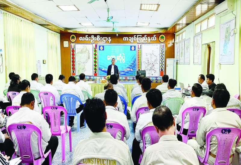 ဆောက်လုပ်ရေးဝန်ကြီးဌာန ပြည်ထောင်စုဝန်ကြီးဦးမျိုးသန့်သည် ယမန်နေ့က ကချင်ပြည်နယ်လမ်းဦးစီးဌာန ညွှန်ကြားရေးမှူးရုံးတွင် ကချင်ပြည်နယ်အတွင်းရှိ အဆောက်အဦ၊ လမ်း၊ တံတား၊ မြို့ပြနှင့်အိမ်ရာဖွံ့ဖြိုးရေးဦးစီးဌာနနှင့် တည်ဆောက်ရေးအထူးအဖွဲ့များတွင် တာဝန်ထမ်းဆောင်နေသော ဝန်ထမ်းများနှင့်တွေ့ဆုံသည်။