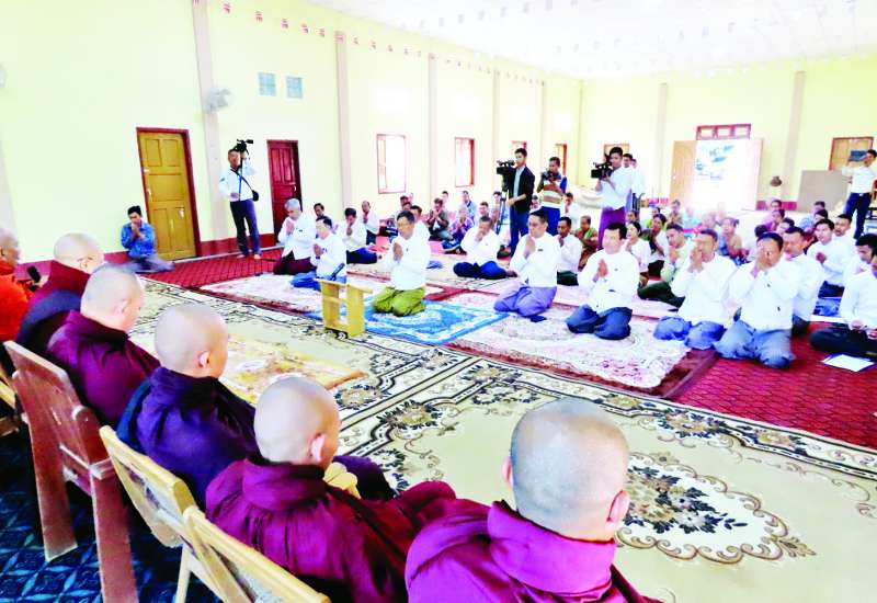 သာသနာရေးနှင့်ယဉ်ကျေးမှုဝန်ကြီးဌာန ပြည်ထောင်စုဝန်ကြီး ဦးတင်ဦးလွင်နှင့် တာဝန်ရှိသူများသည် ယနေ့နံနက် ၁၀ နာရီတွင် ပြည်ထောင်စုနယ်မြေ နေပြည်တော် ဥတ္တရသီရိမြို့နယ် မိုးဆွေကျေးရွာအုပ်စု ပန်းတင်ကျေးရွာ ဝေဠုဝန်ကျောင်းတိုက်၌ ကျင်းပသည့် အသံမစဲ ဥပ္ပါတသန္တိပါဠိတော် ကျမ်းမြတ်ရွတ်ဖတ်ပူဇော်ပွဲ မဟာမင်္ဂလာအခမ်းအနားသို့ တက်ရောက်ကြည်ညိုကြသည်။