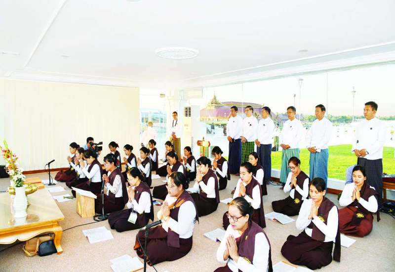 နေပြည်တော် မာရဝိဇယဗုဒ္ဓဥယျာဉ်တော်၊ မာရဝိဇယဗုဒ္ဓရုပ်ပွားတော်မြတ်ကြီး အရှေ့ဘက်အာရုံခံတန်ဆောင်း၌ ယနေ့ အလှည့်ကျဝတ်ရွတ်အသင်းဖြစ်သည့် ပို့ဆောင်ရေးနှင့်ဆက်သွယ်ရေးဝန်ကြီးဌာနမှ ဝတ်ရွတ်အသင်းက ဥပ္ပါတသန္တိပါဠိတော်ကျမ်းမြတ် ရွတ်ဖတ်ပူဇော်နေမှုကို ညနေပိုင်းတွင် ပြည်ထောင်စုဝန်ကြီး ဦးတင်ဦးလွင်နှင့်အဖွဲ့ လာရောက်ကြည်ညိုကြသည်။