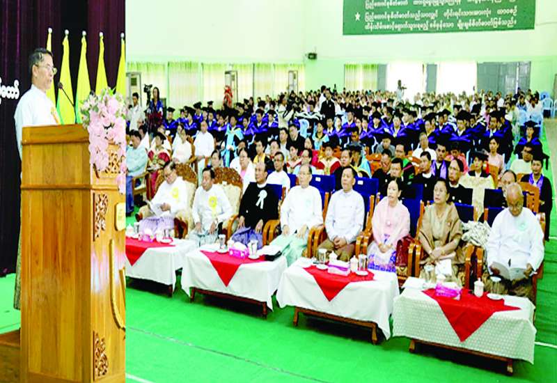 မွေးမြူရေးဆိုင်ရာဆေးတက္ကသိုလ်၏ (၃၅) ကြိမ်မြောက်ဘွဲ့နှင်း သဘင်အခမ်းအနားကို ယနေ့ နံနက်ပိုင်းက ရေဆင်းတက္ကသိုလ် ဘွဲ့နှင်းသဘင်ခန်းမဆောင်၌ ကျင်းပပြုလုပ်ရာ စိုက်ပျိုးရေး၊ မွေးမြူရေးနှင့် ဆည်မြောင်းဝန်ကြီးဌာန ပြည်ထောင်စုဝန်ကြီး ဦးမင်းနောင်၊ ဒုတိယဝန်ကြီးများ နှင့် ဌာနဆိုင်ရာအကြီးအကဲများ၊ ပါမောက္ခချုပ်နှင့် ပါမောက္ခဌာနမှူး များ၊ ဆရာ ဆရာမများ၊ ဘွဲ့ခံကျောင်းသား ကျောင်းသူများ တက်ရောက်ကြသည်။