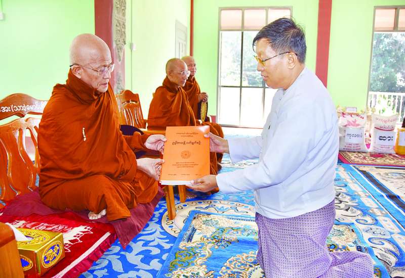 သာသနာရေးနှင့် ယဉ်ကျေးမှုဝန်ကြီးဌာန၊ ပြည်ထောင်စုဝန်ကြီးဦးတင်ဦးလွင်၊ ဒုတိယဝန်ကြီးဦးအေးထွန်းနှင့် တာဝန်ရှိသူများသည် ယနေ့နံနက်ပိုင်းက ပြည်ထောင်စုနယ်မြေ နေပြည်တော် လယ်ဝေးမြို့နယ်ရှိ အင်တိုင်းသာကျောင်းတိုက်နှင့် သရက်ခုံကျောင်းတိုက်တို့တွင်ကျင်းပသော ဆွမ်းဆန်တော်၊ ဆီ၊ ဆား၊ ပဲနှင့် လှူဖွယ်ဝတ္ထုပစ္စည်းများ ဆက်ကပ်လှူဒါန်းပွဲအခမ်းအနားသို့ တက်ရောက်ကြသည်။