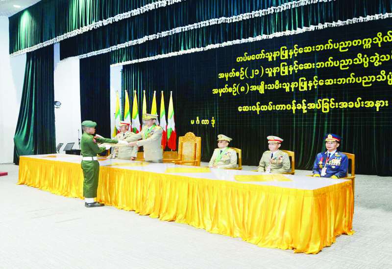 တပ်မတော်သူနာပြုနှင့် ဆေးဘက်ပညာတက္ကသိုလ်၊ သူနာပြုနှင့် ဆေးဘက်ပညာသိပ္ပံဘွဲ့ သင်တန်းအမှတ်စဉ်(၂၁)နှင့် အမျိုးသမီးသူနာပြုနှင့် ဆေးဘက်ပညာသိပ္ပံဘွဲ့ သင်တန်းအမှတ်စဉ်(၈)တို့မှ သင်တန်းဆင်း သင်တန်းသား သင်တန်းသူများအား ဆေးဝန်ထမ်းတာဝန်ခန့်အပ်ခြင်းအခမ်းအနားကို ယနေ့နံနက်ပိုင်းတွင် ရန်ကုန်တိုင်းဒေသကြီး မင်္ဂလာဒုံမြို့နယ်ရှိ တပ်မတော်သူနာပြုနှင့်ဆေးဘက် ပညာတက္ကသိုလ် ဘွဲ့နှင်းသဘင်ခန်းမ၌ကျင်းပရာ ကာကွယ်ရေးဦးစီးချုပ်ရုံး(ကြည်း) စစ်ရေးချုပ် ဒုတိယဗိုလ်ချုပ်ကြီး စိုးမင်းဦး၊ ကာကွယ်ရေးဦးစီးချုပ်ရုံးမှ တပ်မတော်အရာရှိကြီးများ၊ တပ်မတော်သူနာပြုနှင့် ဆေးဘက်ပညာတက္ကသိုလ်ကျောင်းအုပ်ကြီး ဗိုလ်မှူးချုပ် ဝင်းဗိုလ်နှင့် ကျောင်းဆင်း သင်တန်းသား သင်တန်းသူများ တက်ရောက်ကြသည်။