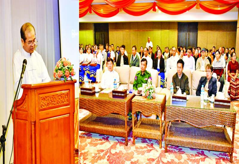 အလုပ်သမားဝန်ကြီးဌာန ဒုတိယဝန်ကြီး ဦးဝင်းရှိန်သည် ယနေ့နံနက်ပိုင်းတွင် မန္တလေးတိုင်းဒေသကြီး ညောင်ဦးမြို့ Royal Palace Hotel ၌ ကျင်းပသည့် မြန်မာနိုင်ငံလုပ်သားများ ကျွမ်းကျင်မှုဖွံ့ဖြိုးတိုးတက်ရေးနှင့် အလုပ်သမားရေးရာဥပဒေများ အသိပညာပေးပွဲသို့ တက်ရောက်အမှာစကားပြောကြား သည်။