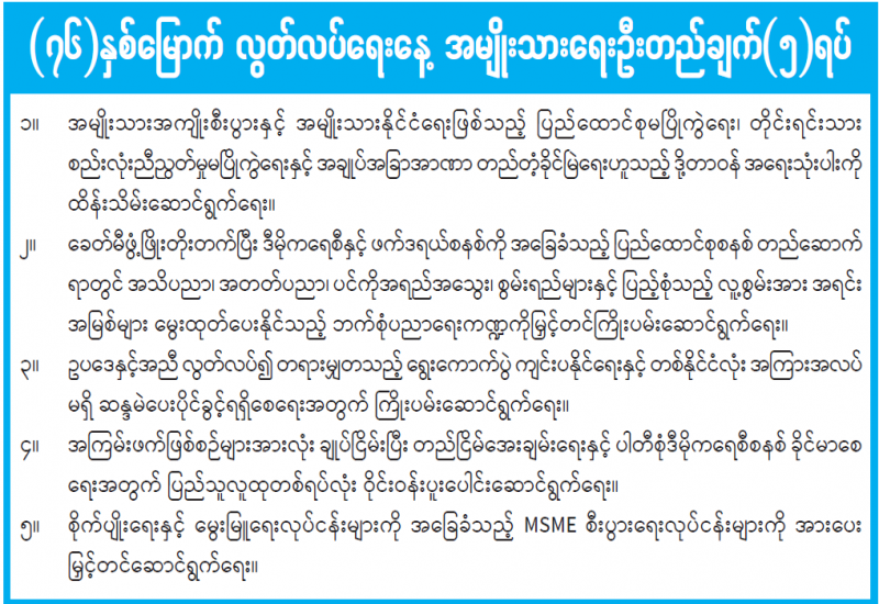 (၇၆) နှစ်မြောက် လွတ်လပ်ရေးနေ့ အမျိုးသားရေးဦးတည်ချက် (၅) ရပ်