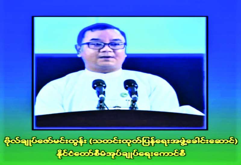 နိုင်ငံအဆင့်ပင်လယ်ကမ်းရိုးတန်း သယံဇာတစီမံအုပ်ချုပ်လုပ်ကိုင်မှု ဗဟိုကော်မတီ၏ (စတုတ္ထအကြိမ်) အစည်းအဝေးကို ယနေ့မွန်းလွဲ ၂ နာရီတွင် နေပြည်တော်ရှိ သယံဇာတနှင့်သဘာဝပတ်ဝန်းကျင်ထိန်းသိမ်းရေးဝန်ကြီးဌာန သစ်တောဦးစီးဌာန အင်ကြင်းခန်းမ၌ ကျင်းပရာ နိုင်ငံအဆင့် ပင်လယ်ကမ်းရိုးတန်း သယံဇာတစီမံအုပ်ချုပ်လုပ်ကိုင်မှု ဗဟိုကော်မတီဥက္ကဋ္ဌ နိုင်ငံတော်စီမံအုပ်ချုပ်ရေးကောင်စီအဖွဲ့ဝင် ဒုတိယဝန်ကြီးချုပ်နှင့် ပို့ဆောင်ရေးနှင့်ဆက်သွယ်ရေးဝန်ကြီးဌာန ပြည်ထောင်စုဝန်ကြီး ဗိုလ်ချုပ်ကြီး မြထွန်းဦး တက်ရောက် အမှာစကားပြောကြားသည်။
