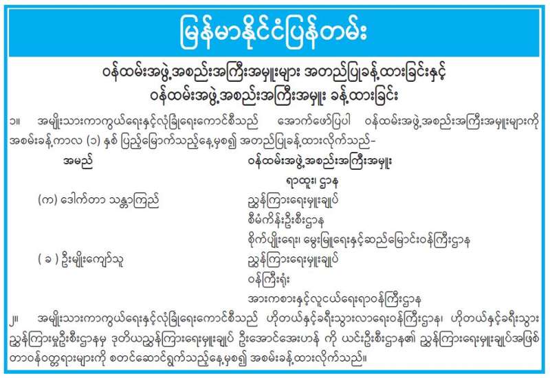 ဝန်ထမ်းအဖွဲ့အစည်းအကြီးအမှူးများ အတည်ပြုခန့်ထားခြင်းနှင့် ဝန်ထမ်းအဖွဲ့အစည်းအကြီးအမှူး ခန့်ထားခြင်း