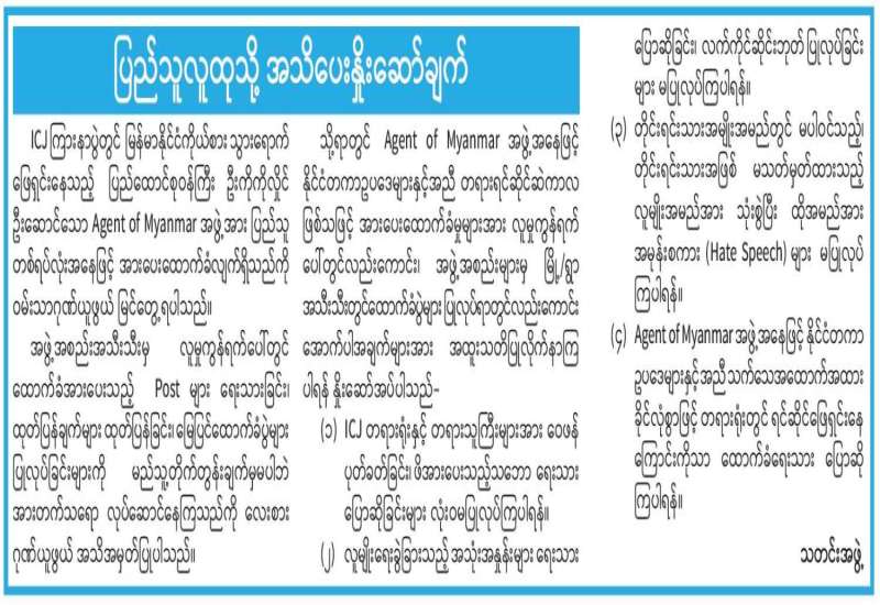 အကြမ်းဖက်အုပ်စုအဖြစ်ကြေညာထားသည့် CRPH၊ NUG နှင့် ယင်းတို့၏ လက်ဝေခံအဖွဲ့အစည်းများ၊ ယင်းတို့နှင့်ဆက်နွှယ်နေသောအဖွဲ့အစည်းများ၊ လူပုဂ္ဂိုလ်များသည် နိုင်ငံတော်တည်ငြိမ်အေးချမ်းရေးကိုပျက်ပြားစေရန်နှင့် အစိုးရယန္တရားများပျက်ပြားစေရန်ရည်ရွယ်လျက် လှုံ့ဆော်ခြင်း၊ဝါဒဖြန့်ခြင်းများပြုလုပ်ခဲ့မှုအပေါ် ဥပဒေနှင့်အညီထိရောက်စွာအရေးယူသွားမည်ဖြစ်ကြောင်းနှင့် ထိုသို့လှုံ့ဆော်သူ၊ ဝါဒဖြန့်သူများအား ဆက်လက်ဖော်ထုတ်အရေးယူသွားမည်ဖြစ်ကြောင်း မိဘပြည်သူများသိရှိနိုင်ရေး အသိပေးသတင်းထုတ်ပြန်ပြီးဖြစ်သည်။