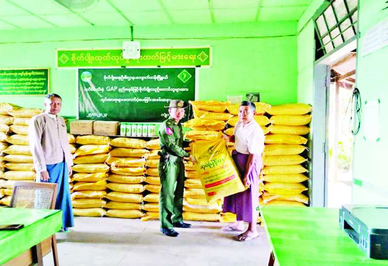 ရန်ကုန်တိုင်းဒေသကြီး ကျောက်တန်းမြို့နယ်တွင် ၂၀၂၃-၂၀၂၄ ခုနှစ် ဆောင်း သီးနှံပဲတီစိမ်း GAP နည်းစနစ်ဖြင့် ဧက ၂၀၀ စိုက်ပျိုးမည့် ကျုံကန်ကျေးရွာမှ တောင်သူဦးကြီးများအား သွင်းအားစုသဘာဝမြေဩဇာရွက်ဖျန်းဆေးနှင့် တမာပိုးသတ်ဆေးများ ထောက်ပံ့ပေးအပ်ပွဲကို ယနေ့နံနက်ပိုင်းတွင် ကျောက်တန်းမြို့နယ်စိုက်ပျိုးရေးဦးစီးဌာန မြို့နယ်ဦးစီးမှူးရုံး၌ ပြုလုပ်ခဲ့သည်။