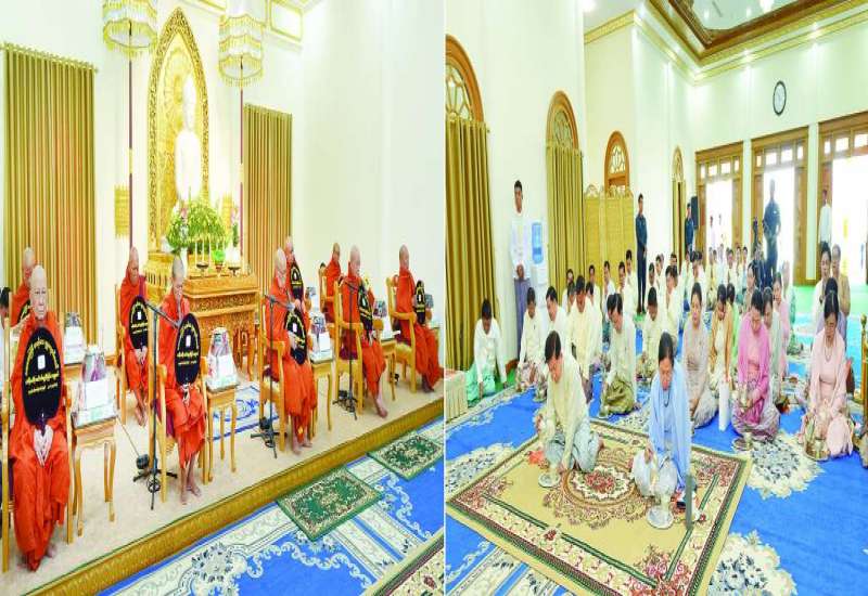 ပြည်ထောင်စုနယ်မြေနေပြည်တော်၊ ဒက္ခိဏသီရိမြို့နယ်ရှိ မာရဝိဇယဗုဒ္ဓရုပ်ပွား တော်မြတ်ကြီး မာရဝိဇယဗုဒ္ဓဥယျာဉ် ဝတ္ထုကံတော်အတွင်းရှိ မာရဝိဇယကျောင်းတော် ကထိန်သင်္ကန်း ဆက်ကပ်လှူဒါန်းပွဲအခမ်းအနားကို ယနေ့နံနက်ပိုင်းတွင် အဆိုပါ မာရဝိဇယကျောင်းတော်၌ ကျင်းပပြုလုပ်ရာ နိုင်ငံတော်စီမံအုပ်ချုပ်ရေးကောင်စီ ဥက္ကဋ္ဌနိုင်ငံတော်ဝန်ကြီးချုပ် ဗိုလ်ချုပ်မှူးကြီး မင်းအောင်လှိုင်နှင့်ဇနီး ဒေါ်ကြူကြူလှတို့တက်ရောက်၍ ကထိန်လျာ သင်္ကန်းနှင့် လှူဖွယ်ပစ္စည်းများ ဆက်ကပ်လှူဒါန်းသည်။
